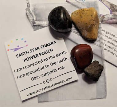 This pouch is designed with the intent to help balance the Earth Star Chakra. Includes one of each: Picture Jasper, Lodestone rough, Andalusite, Hematite Jasper, organza bag, affimation card, and printed directions.