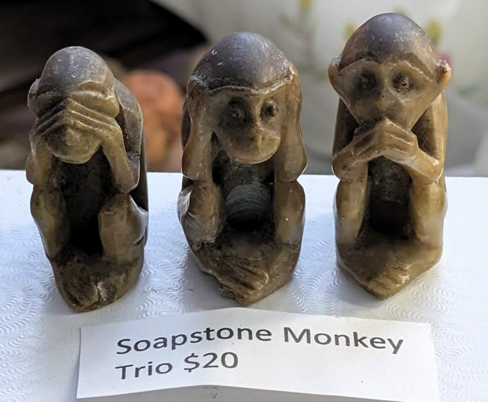 These adorable hand-carved vintage Soapstone monkeys, represent the 3 Wise Monkeys See No Evil, Hear No Evil, Speak No Evil. They stand approx. 1.5 inches tall.