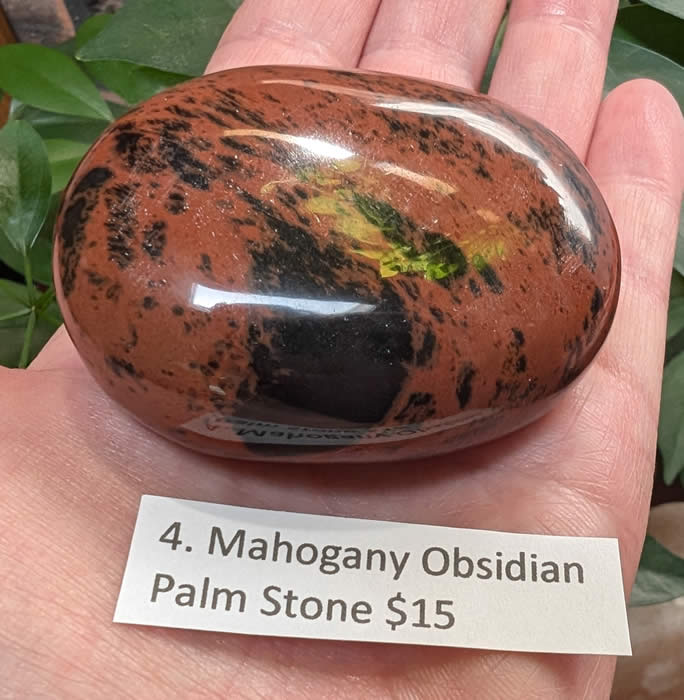 4. Mahogany Obsidian palm stone 4 ounces 2.25 x 1.75 inches $15