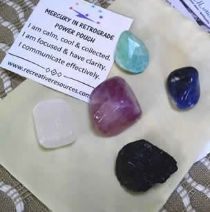 Mercury in Retrograde happens a few times a year. It can be a time of confusion, forgetfulness, miscommunication, reflection, letting go and taking care of the soul. Includes one of each: Amazonite, Sodalite, Satin Spar, Fluorite, Black Tourmaline rough, velour bag, affirmation card, and printed directions.