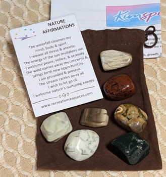 Tree Agate, Epidote, Petrified Wood branch, Tiger Eye, Vesuvianite, in a Spring cotton bag with affirmation card. Stones are rough 1-1.5 inches. $8 + shipping