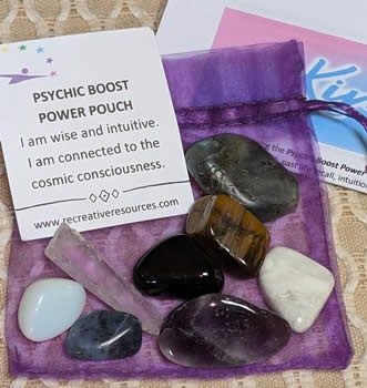 The energies of this power pouch are combined to assist empaths and those with clairsentient abilities, in clearing away unwanted energies as well as to heighten ones “feeling and sensing” abilities. This power pouch includes one of each: Satin Spar Selenite stick,
