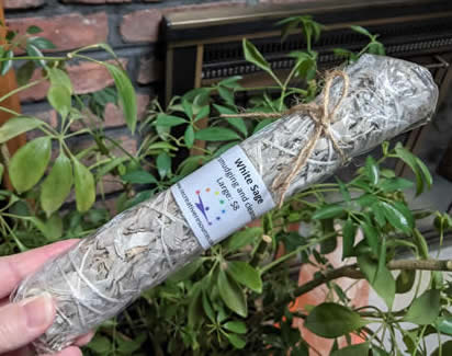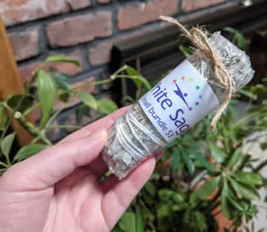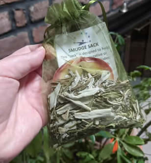 Includes a mix of Rosemary and White Sage, shell, small feather, and organza bag. This is a great travel smudge bag. Never leave home without it.